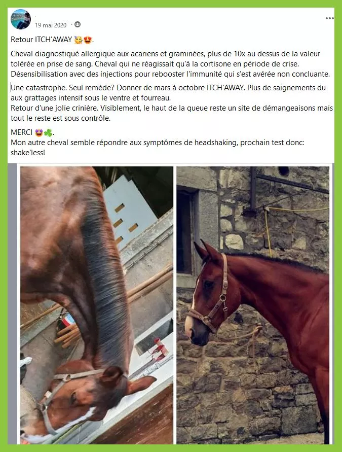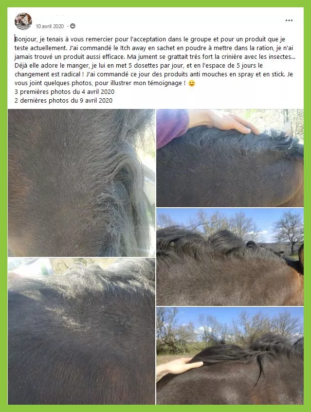 1 kg de mélange= 30 jours. Le mélange Itch Away doit être donné avant que les mouchettes ne sortent, à partir mars à fin septembre, à mélanger dans la nourriture de votre cheval. Tous nos mélanges sont bien acceptés par les chevaux, même les plus difficiles.