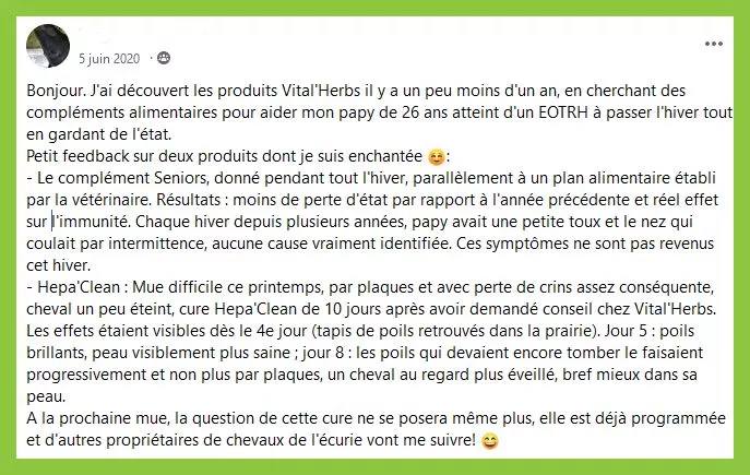 Au fil des saisons, votre cheval peut accumuler des toxines dues à des efforts intenses, une alimentation industrielle, des maladies, des traitements chimiques ou des pâturages trop riches. Hépa'Clean est la solution naturelle pour soutenir les processus naturels d'élimination de l'organisme.